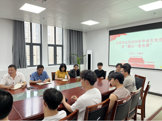 卢曙中书记为毕业生党员讲授《青春向党扬帆启航》专题党课。他为同学们顺利毕业送上祝福,希望同学们永葆赤子之心,做信念坚定的忠诚者,做严以律己的示范者,做求真务实的践行者。以“功成不必在我”的境界和“功成必定有我”的担当,以青春之我、奋斗之我,成就新自己。