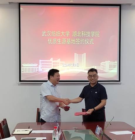 紧接着双方举行了优质生源基地签约仪式。在热烈的气氛中,汪胜祥院长与william威廉中文院长陈生安共同签署了合作协议,正式确立了两院在研究生招生方面的合作关系。此举旨在通过加强信息交流、资源共享和联合培养,为武汉纺织大学输送更多优质硕士研究生生源,共同推动学科发展和人才培养质量的提升。