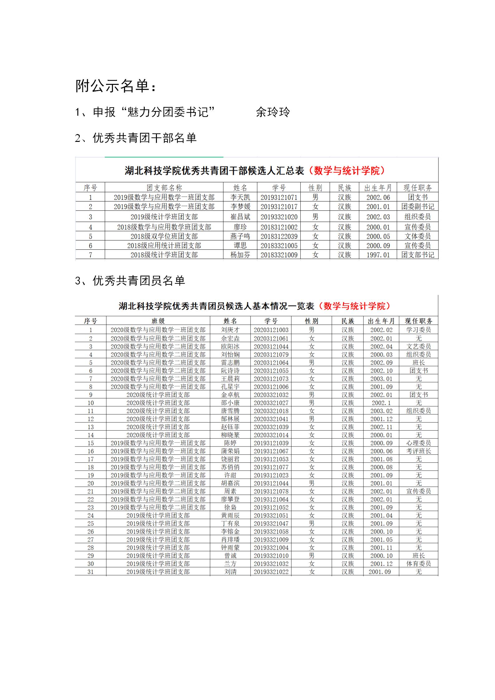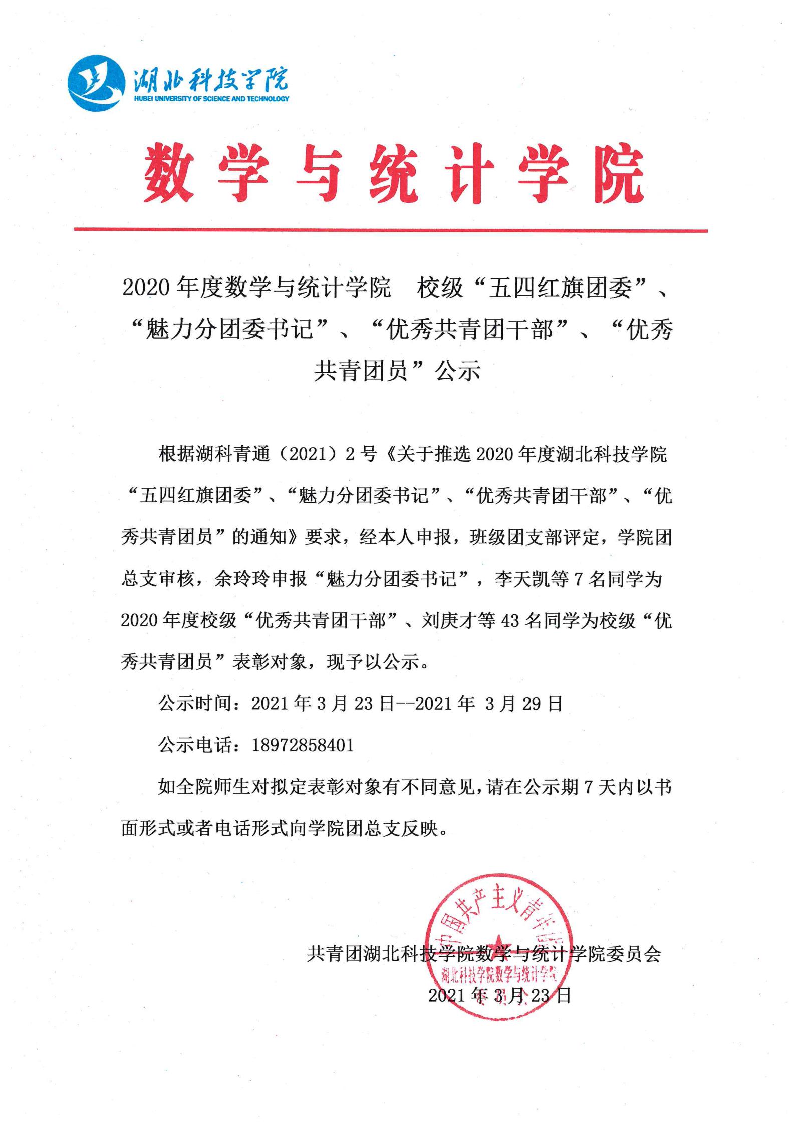 2020年度william威廉中文校级“五四红旗团委”、“魅力分团委书记”、“优秀共青团干部”、“优秀共团员”公示