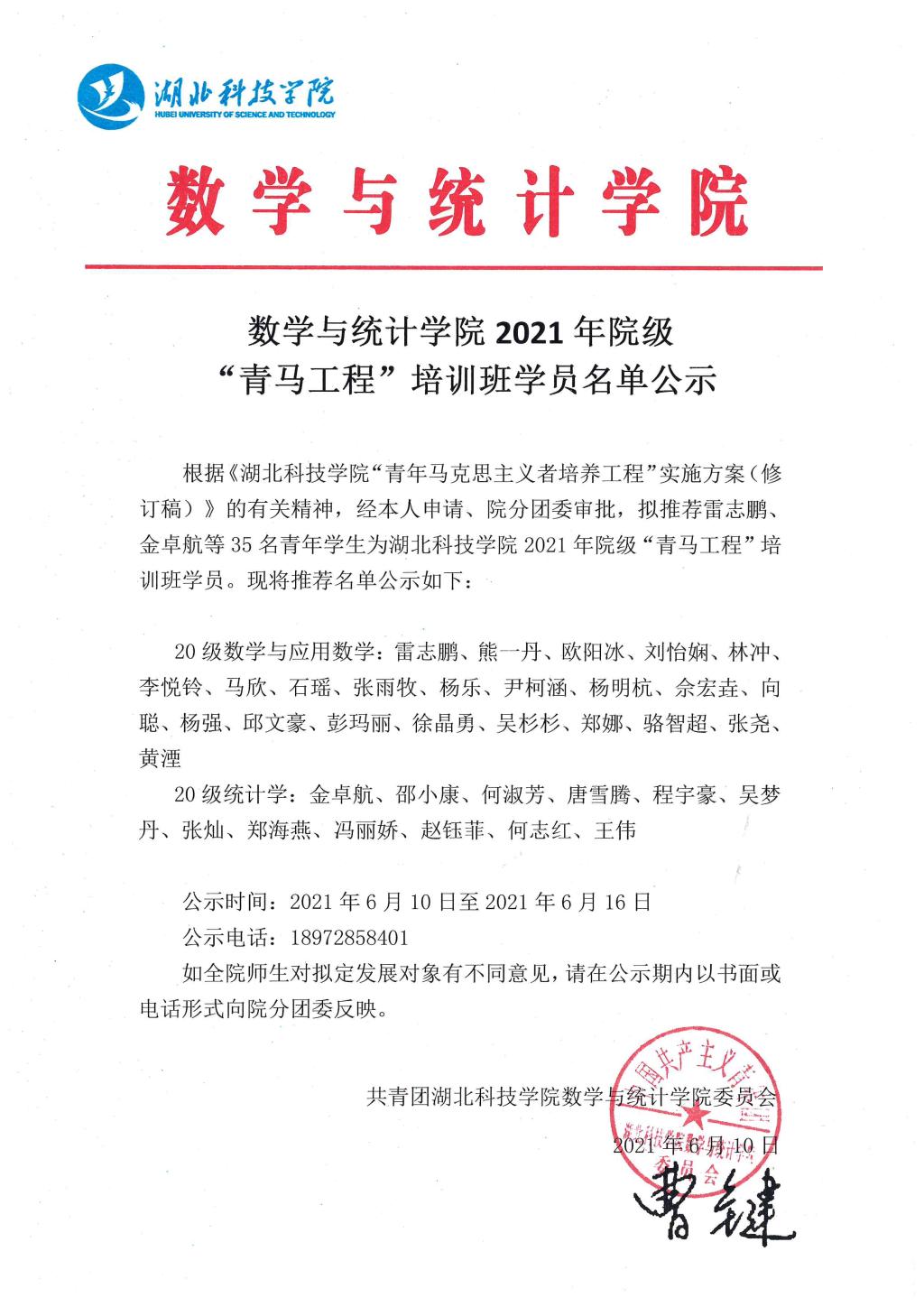 william威廉中文2021年院级“青马工程”培训班学员名单公示