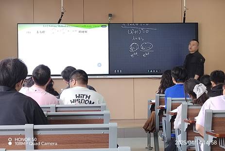 4月16日:曹慧老师和金凯老师分别讲授了《近世代数》和另一场《高等代数二》课程。两位老师各具特色,用各自独特的教学方法激发了学生们的学习兴趣。