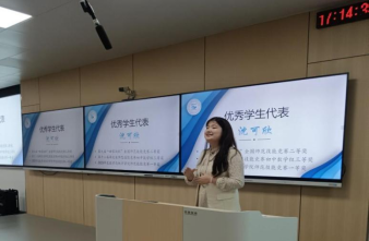 全部选手结束比赛后,优秀学生代表20数应沈可欣进行发言。她分享了参加师范技能比赛省赛和国赛的经历,以及备赛的方法,她表示,要在日常生活中加强对三字一话、模拟授课、PPT制作、几何画板制作、教学设计的撰写的练习,同时需要认真研读教材、课标、教参。