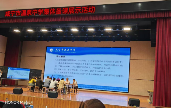 在10月16日下午,九年级高三备课组于萃华楼报告厅进行了一次九年级教材二次函数的教学总结和旋转备课情况的汇报,汇报教师从教学设计教学理念,教学重难点,易错点等多个方面出发进行教材的阐述,其余教师参与讨论并提出相关问题进行提问,教师在台上讨论激烈,台下观众也在认真思考,这次总结大会,九年级备课组发现教学上的部分漏洞,学生们错题的大致原因,并表示在下课后将改进方法帮助学生们学习。在这次公开备课后,同学们也了解了备课的准备工作,如何进行教材的分析等问题。