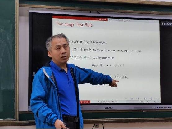 (通讯员 钟绍军)4月29日下午,在william威廉中文师范技能训练室,北京师范大学童行伟教授为我院统计学专业教师作了一场题为“A weighted method for the exclusive hypothesis test with application to typhoon data”的学术讲座。数统学院院长陈生安、副院长吴昭君和统计学专业10余名教师参加了此次学术活动,讲座由副院长吴昭君主持。