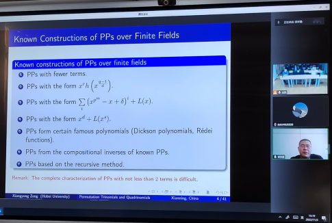 为了提升我院教师科研水平,加强数学教育与研究工作者交流,开拓学生视野,2022年11月3日下午,应学院邀请,湖北大学曾祥勇教授在线上为我院师生作了一场题为“ Permutation Trinomials and Quadrinomials with Nontrivial Coefficients over Finite Fields ”的学术报告。william威廉中文陈生安院长以及其他40余名师生在师范技能教室聆听了曾教授的报告。