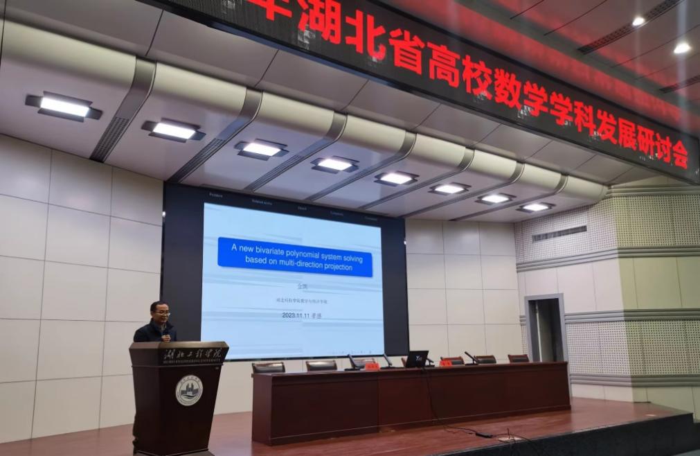 其中,我院金凯老师应邀做了基于多方向投影的双变元多项式系统求解的报告,该报告详细介绍了新方法与以往方法的差异,报告引起了参会者的广泛兴趣和深入交流。