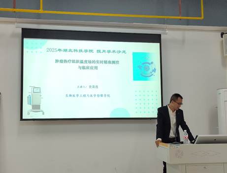 生物医学工程与医学影像学院的史贵连老师则围绕“肿瘤热疗组织温度场的实时精准测控与临床应用”展开报告。他介绍了热疗作为继手术、放疗、化疗和免疫疗法后的第五大肿瘤治疗手段,因其“绿色疗法”特性备受关注。史老师团队通过创新研发全局智能优化算法,构建高效目标函数模型,显著减少了优化迭代的计算量;同时改进并行群搜索算法,融合交叉因子与模拟退火技术,有效提升了算法收敛性能,降低了陷入局部极值的风险。目前,该研究成果已与企业合作实现临床转化,成功应用于肿瘤热疗温度场的动态监测与控制,各项指标均达到市场要求。