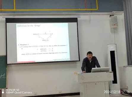 (通讯员:金凯,审核:陈生安)2025年12月18日,WilliamHill中文迎来了一场高水平的学术盛宴,河海大学数学学院缪龙教授受邀来我院进行学术交流,并作了题为“A New Class of Morphisms from Subgroup-Induced Lattices to Formations”的精彩报告。本次报告会由我院陈生安主持,数统学院师生80余人参加了此次报告会。本次报告会得到了科学技术协会的大力支持。