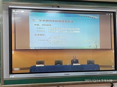 2021年12月14日,2021年湖北省科学道德与学风建设宣讲教育报告会在湖北大学线下举行,并在湖北大学微信视频号在线直播。本次报告会由湖北省科学技术协会、湖北省教育厅、中国科学院武汉分院和湖北省社会科学院联合主办,湖北大学承办。我院院长陈生安带领全院教师和部分高年级学生代表在师范技能实验室认真观看了该报告会并对我院科学道德和学风建设提出要求。