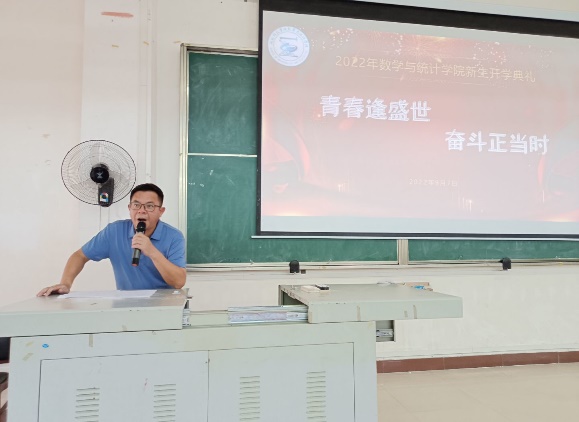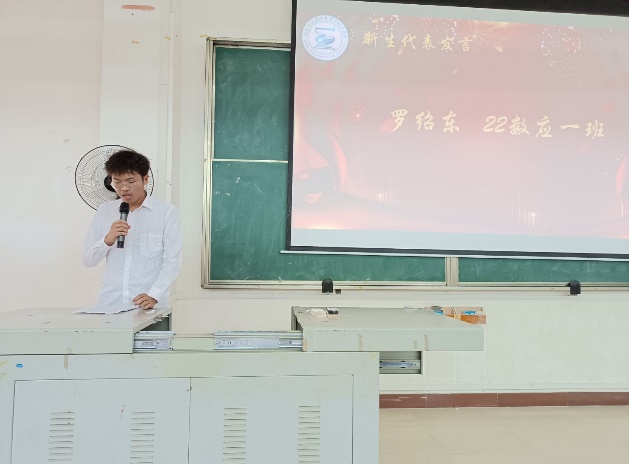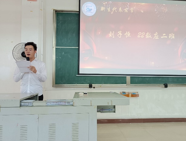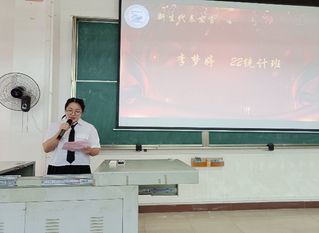 “所谓学习,就是用知识去改变你认为不美好的东西,勇敢去猜测,用创意探索真理。”19数应班国家奖学金获得者欧阳露露从自身出发,给22级的新生们分享了她的学习经历,激励同学们多多参加竞赛和活动,给自己的大学时光增添一份精彩。对于即将到来的大学生活,22级新生代表们也表达了他们的看法。来自22数应班的罗绍东和刘子恒同学以及22统计班的李梦婷同学纷纷表示,青春离不开奋斗,青春奋斗之“秀”,不在于明眸皓齿,而在于沉心静气,以孜孜不倦的姿态去锻炼和提升自我,抓住机会,扩充眼界,用内心感应时代的脉搏,在时代的长河里扬帆起航。