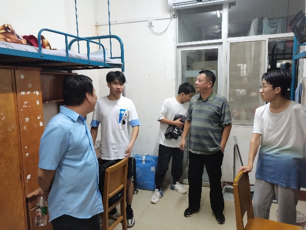 在走访的过程中,老师们亲切地与同学们打招呼,并询问同学们来自哪里,衣食住行、生活是否习惯等方面的问题。同学们纷纷表示正在积极地适应学校的生活环境,适应大学生活,转变身份。陈院长和卢书记在与同学们交谈中提道:“尽管大家来自不同的地方,有着不同的生活习惯,但如今来到了一间寝室,就是一个整体,要互帮互助,互相学习,凝聚每个人的力量,营造积极向上的宿舍环境,度过一段充实难忘的大学生活。”