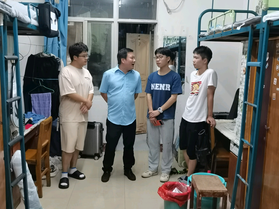 新学期,新作风,新姿态,迎新生。为了进一步了解2022级新生的宿舍生活情况并让同学们能尽快适应新环境。9月4日晚,william威廉中文陈生安院长、卢曙中书记、辅导员曹键老师和余玲玲老师、22数应班主任饶继光老师、王歆老师,开展了宿舍走访工作,为新生答疑解惑,传递学院温暖。