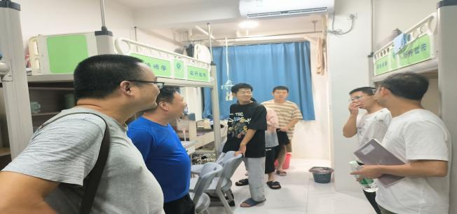 在走访学生宿舍的过程中,陈院长也详细询问了解同学们的生源地、家庭背景、食堂的膳食是否合胃口、生活用品是否已备齐、对住宿环境是否适应、入校后的感受、住宿的设备以及与新室友的相处情况,了解同学们的家庭背景,倾听并记录同学们来校后所遇到的问题与困难,从“团结”、“包容”、“互助”、“奋进”等方面鼓励新生团结、友爱互助,为新同学们送上一份贴心的温暖。此外,他建议同学们调整好作息时间,以饱满的精神,参加军训。
