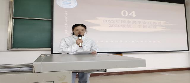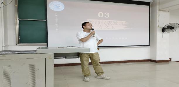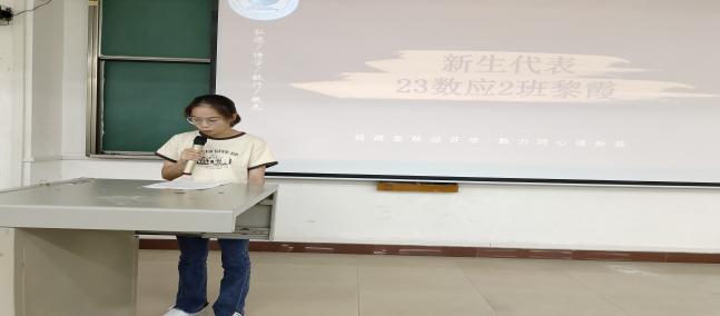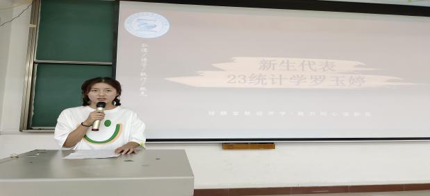 之后分别由教师代表方文玉老师,2022年国奖获得者何志红,新生代表丁仕杰、黎霞、罗玉婷发言。他们的发言都充满了对新学期的期望和憧憬。方文玉老师代表全体老师表示:依然会本着“对学生负责”的宗旨。以敬业务实的精神开拓进取,与学生共同创造人生的奇迹。他还向同学们提出,在学习中要带上理想和目标、自信和坚强、勤奋和努力。20统计班何志红学姐用亲身经历讲述自己如何获得国奖,激励新生们从现在开始树立自己的目标,并为之奋斗。不浪费自己的大学时光。而新生代表丁仕杰、黎霞、罗玉婷三人的发言都表达了对学校、老师的谢意,并在发言中代表全体同学郑重承诺:一定会珍惜学习中的分分秒秒,用最大的热情和努力迎接新学期新生活。