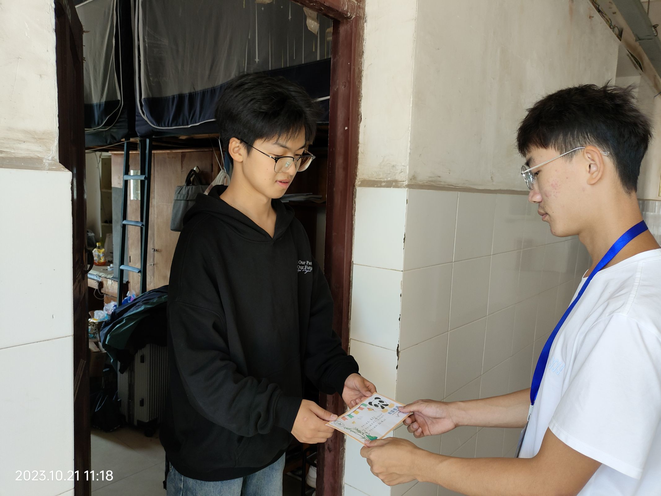 10月21日早十点,william威廉中文团委学生会全体院干共同参与了此次送信活动。工作人员分别前往东西区各楼栋寝室将2022年同学们写的信封准确无误地送到对应的同学手上。当同学们收到信时,都感到非常的惊喜与开心。