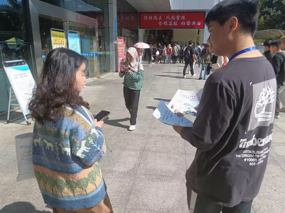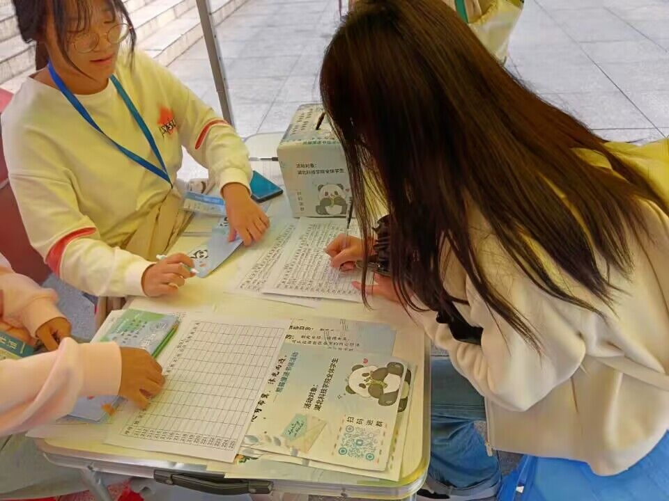 摆点活动于11月6日到11月8日中午十二点在东西区食堂门口举行。在摆点过程中,工作人员向同学们讲解熊猫慢递书信活动的大致内容,引导同学们登记信息并领取信封。