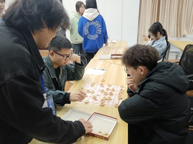 比赛为期两天,采取直接淘汰赛制,分为初赛,决赛两轮,选手们以饱满的热情和高度的积极性全身心地投入到此次比赛中,充分发挥了敢打敢拼的竞技精神。本次比赛分为象棋,五子棋和自走棋共三项。比赛期间,同学们或深思熟虑,或果断出击,他们在棋盘上尽情展示自己的棋艺和策略。有的选手运筹帷幄,步步为营,以稳健的棋风掌控全局;有的选手则敢于出奇制胜,以巧妙的招式打破对手的防线。自走棋的选手们两两配合,上演了一场无与伦比的竞争,五子棋的参赛选手最多,比赛更是激烈,充分激起了同学们的兴趣与斗志。象棋的参赛者们顾全大局、三思后行,在棋盘上碰撞出了无数火花。