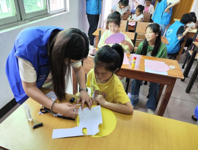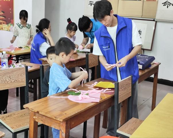 宣讲结束后,志愿者们开始带领小朋友们开展卡纸花朵手工活动,小朋友们都发挥着自己的奇思妙想,志愿者们也都为孩子们提供着力所能及的帮助。小朋友们用心的制作着手工,打算在这个特殊的日子里亲手为母亲送上一份节日的祝福。