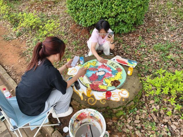活动伊始,工作人员带领志愿者们前往相对应的井盖,志愿者们在熟悉了他们所需绘画的图案后,开始了涂鸦。阳光下的他们,目光如炬,眼神里透露着坚定,手中的画笔在井盖上飞舞,描绘着祖国壮丽的山河,抒发着对祖国无尽的赞美和热爱。