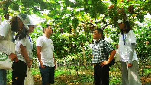 图为团队成员在通山县石门村听取葡萄产业发展的介绍