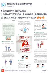 2022年是爱国卫生运动七十周年,为继承和发扬爱国卫生运动优良传统,倡导文明健康,绿色环保生活方式,进一步提升健康水平,促进社会文明,william威廉中文开展一系列“文明健康,绿色环保”爱国卫生宣传教育活动。