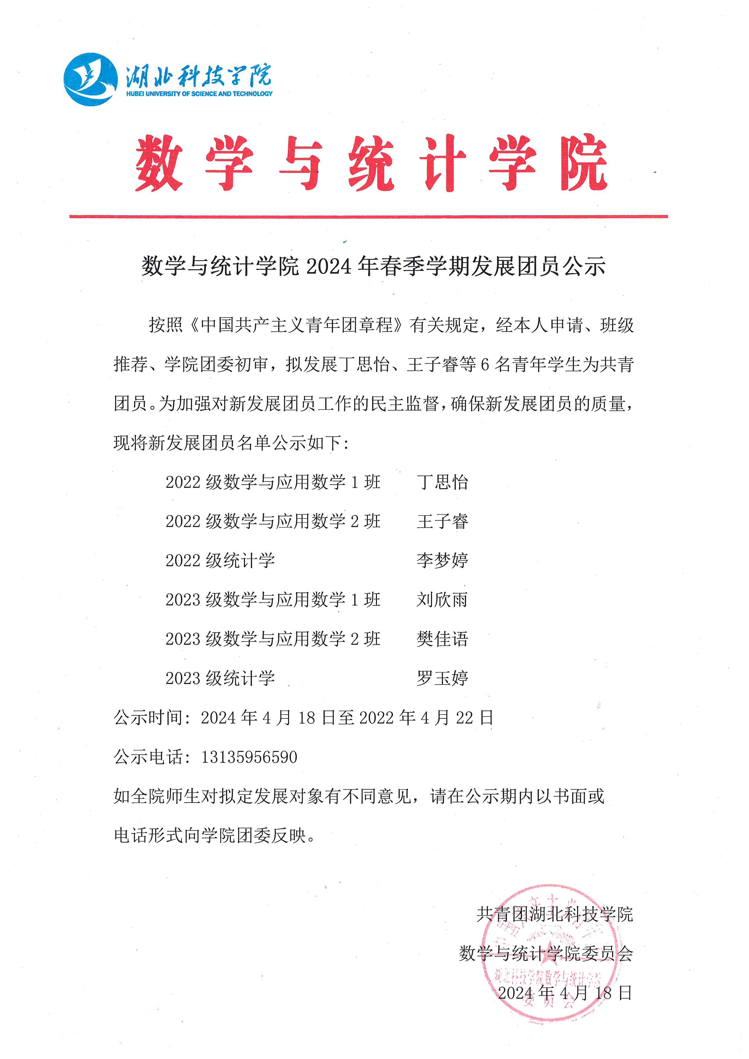 william威廉中文2024年春季学期发展团员公示