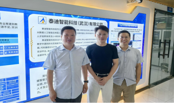 在泰迪智能科技(武汉)有限公司,公司总经理田代平对学院到访表示了热烈的欢迎,高度评价公司与学院多年来合作交流成果,并将公司近期的发展规划和业务前景作了详细介绍。陈生安院长对公司的热情接待表达了感谢,希望在公司未来发展的过程中能与学院继续深度合作,并为学院统计专业学生提供行业前沿发展信息和就业形势指导,同时诚恳邀请公司技术团队到学校开展学术讲座。