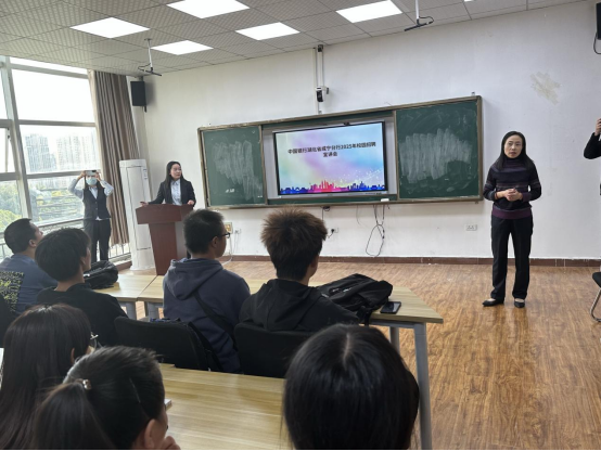 宣讲会上,银行招聘负责人详细介绍了中国银行的发展历程、企业文化、人才培养体系以及咸宁分行的业务特色与地域优势。结合统计学专业特点,重点讲解了数据分析、风险控制、市场研究、数字化运营等岗位对统计人才的能力要求与发展前景,强调了金融行业在数字化转型过程中对扎实数理基础和数据分析能力的迫切需求。