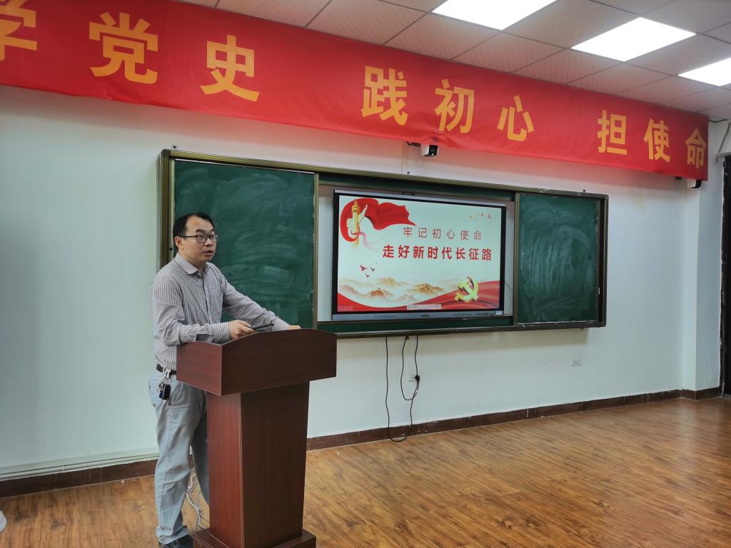 随后,数学教工支部书记刘良华分享了《论中国共产党历史》第三十六篇《牢记初心使命,走好新时代长征路》。刘良华介绍了红军长征的伟大历史、红军长征的精神内涵、长征精神的现实意义等内容,并分享学习体会。他表示伟大的长征精神是中华民族精神的传承和发扬,全体党员必须要坚定理想信念,要站稳人民立场,要勇于攻坚克难,走好新时代的长征路。