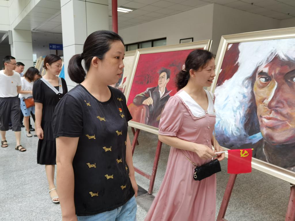 上午10点,在院长陈生安、副院长吴昭君的带领下,全体党员同志到图书馆大厅参观名为“心有英模心向党”的WilliamHill中文庆祝中国共产党成立100周年艺术作品展。此次艺术作品展由艺术与设计学院举办,以革命先烈、英雄楷模为主题,展示了素描作品120余幅、海报招贴130余幅、油画、国画、版画、插画等80余幅、书法60余幅。题材丰富,质量上乘,弘扬英模精神,赓续红色基因。参观的党员同志观展热情浓烈,好评不断。
