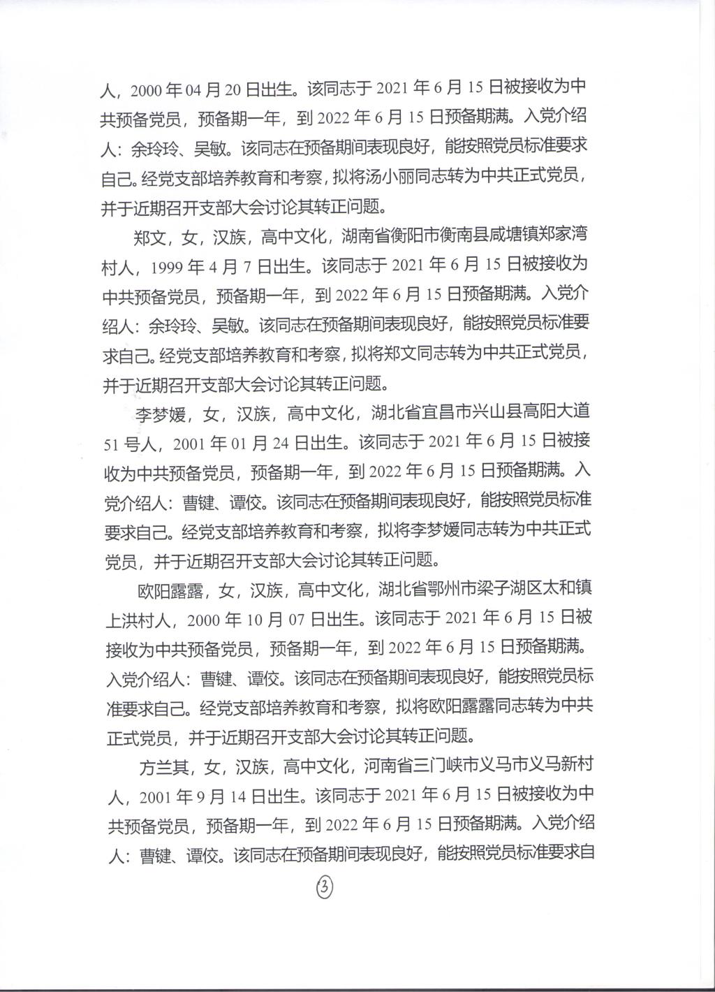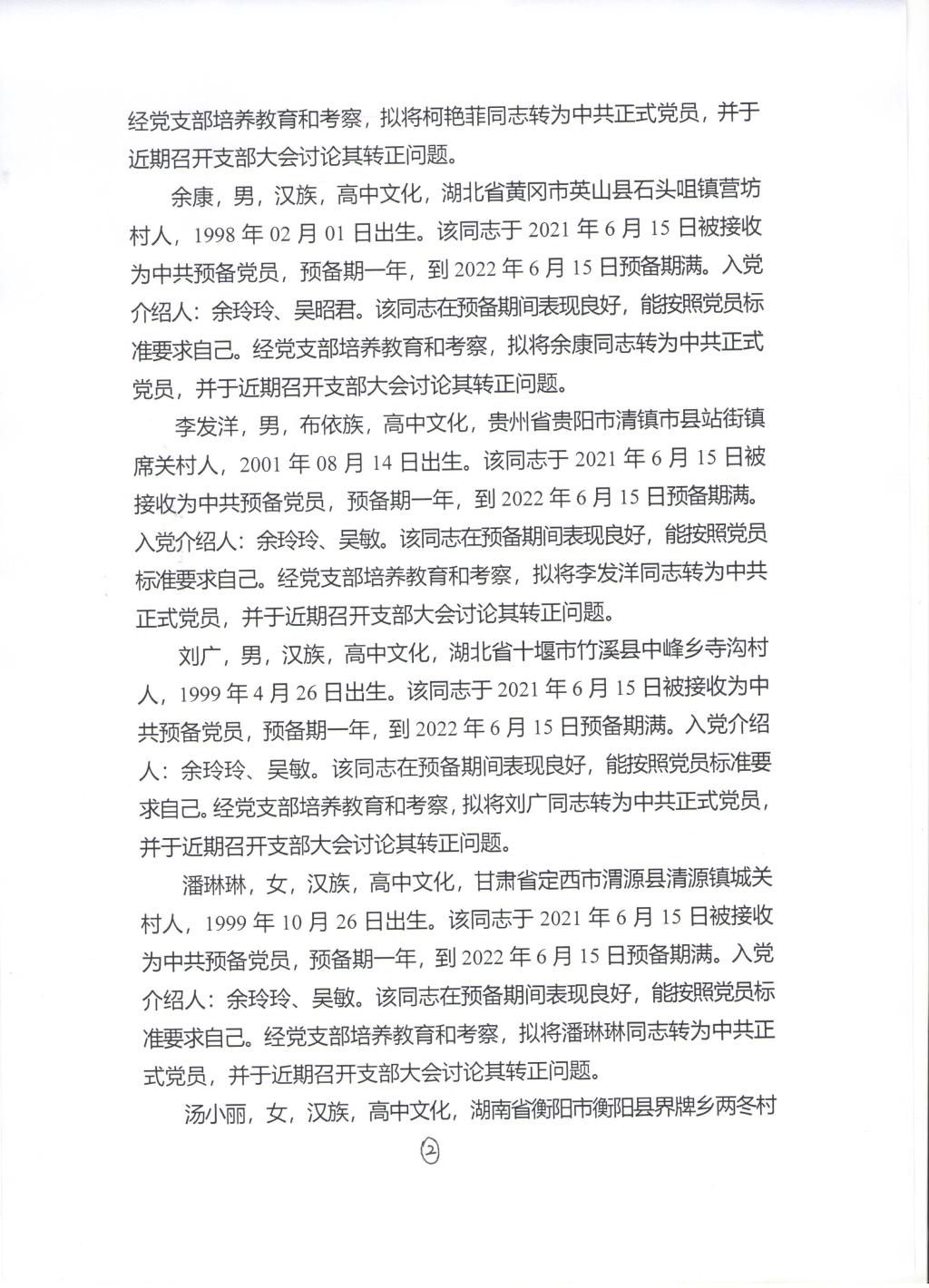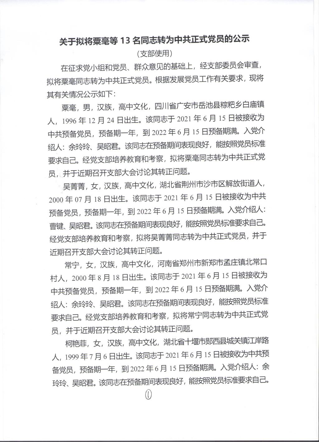 关于拟将粟毫等13名同志转为中共正式党员的公示