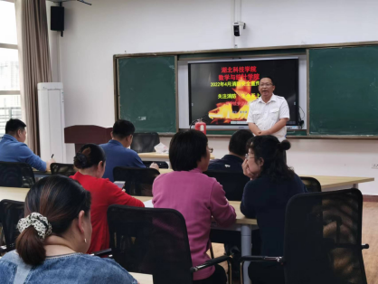 为提高全院教师消防安全意识,掌握消防安全技能,5月12日,咸宁社安消防董华波教官应邀为全院教职工作消防知识普及讲座。讲座由院长陈生安主持,党委书记卢曙中作总结讲话。