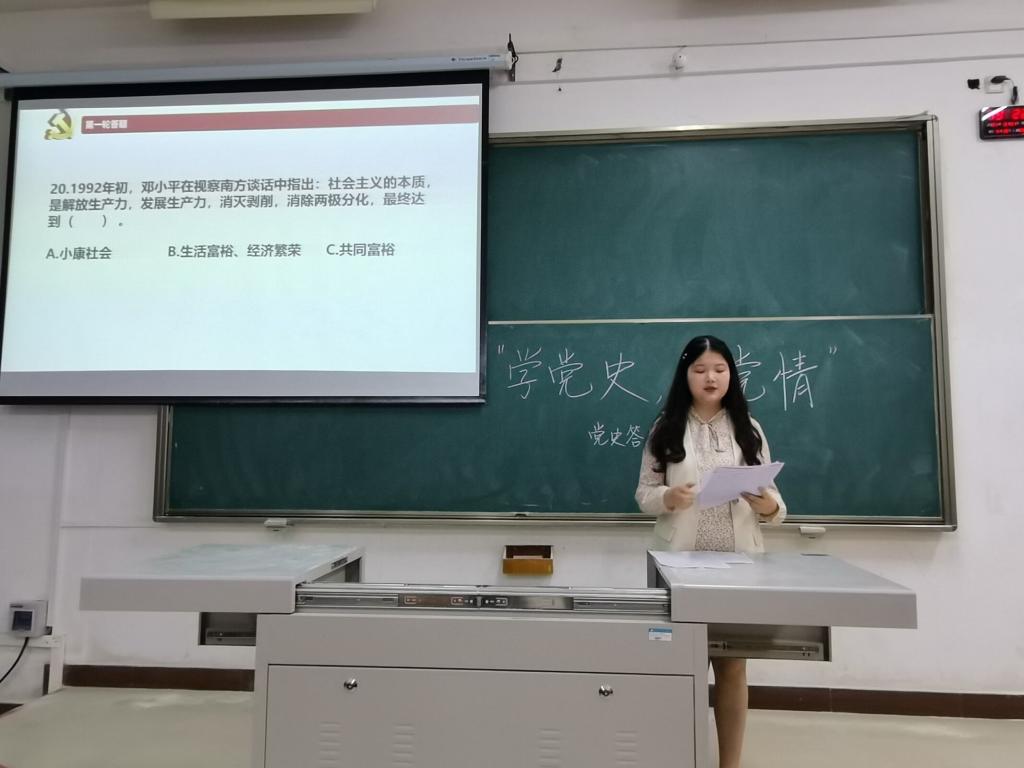 此次活动共339名同学参赛,23名同学进入决赛。晚上19时整活动正式开始,主持人向决赛选手详细介绍了本次党史答题知识竞赛活动的意义和赛制规则。决赛共分三轮,第一轮共有20道单选题,每题20秒的答题时间,第一轮答题筛选出得分较高的前20名同学,进入第二轮答题。第二轮答题在第一轮的基础上增加了难度,将20道单选题改为10道多选题和10道填空题,这更加考验参赛选手的能力。经过一番激烈地角逐,最终雷志鹏,欧阳冰,何敏三名同学在本轮比赛中获胜,进入最终的决赛。