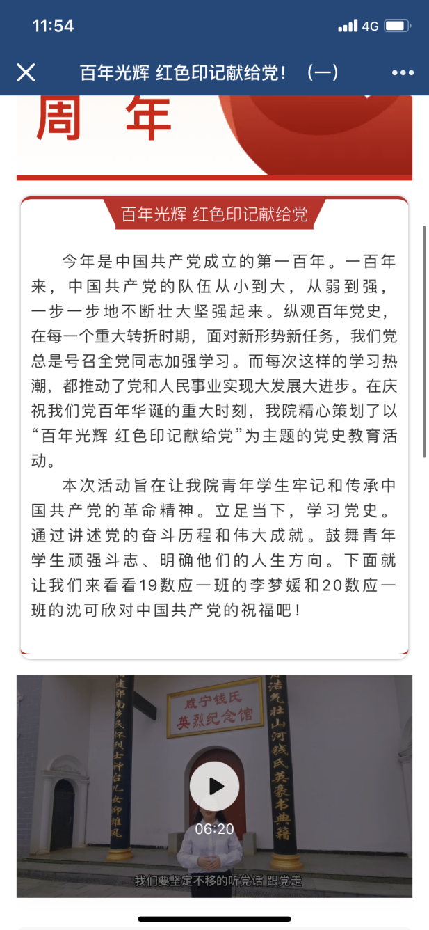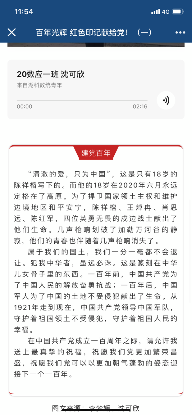 在活动过程中,共收集到23篇关于建党百年伟业的征文作品,38个关于建党百年感想的音频作品和3个关于建党百年的祝福视频。经过层层筛选之后,共选出优秀征文16篇,优秀音频22个,优秀视频3个,且分别评选出了一、二、三等名次。