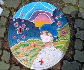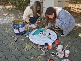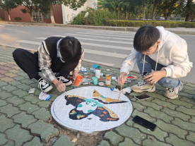 彩绘湖科活动分为井盖涂鸦和西区墙绘两个主题。井盖涂鸦是一种以丙烯彩绘的形式呈现,以色彩、创意、环保为宗旨的行为艺术。从创办初期的“飞扬青春梦,彩绘湖科情”“争做新青年,盛赞家乡美”到如今的“彩绘光荣党史,共庆百年华诞”“建团百年铸辉煌,凝心聚力再出发”已成功举办了十一届,全面覆盖了温泉校区主干道。在画手们描线、上色、勾勒下,一幅幅创意十足又充满文明气息的涂鸦替代了原本冷冰冰的井盖,使原本不起眼的井盖熠熠生辉,成为湖科校园文化传承的一张明信片。