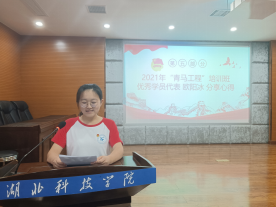 最后,第一期青马工程培训班优秀学员代表唐雪同学带领大家一同重温入团誓词。本次大会着力引导青年骨干学习贯彻习近平新时代中国特色社会主义思想,进一步发挥好为党育人作用,打造一支信仰坚定、能力突出、能够在学生中起典型标杆和示范引领作用的团学骨干队伍为第二学期青马班学员成为德智体美劳全面发展的社会主义建设者和接班人打下了一个良好的基础