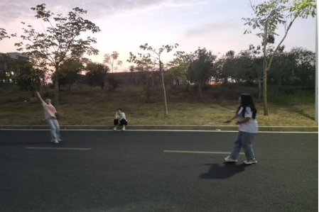 晚上实习生们一起打羽毛球、跑步,感觉很有青春气息,并且晚上操场上很热闹。