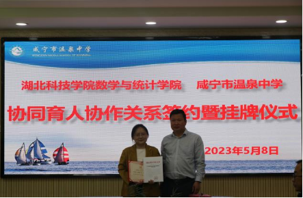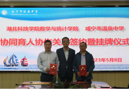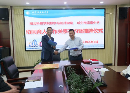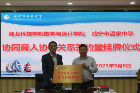 随后,陈生安和李育军共同签署协同育人合作协议,并举行教学实践基地的挂牌仪式。陈生安表示,此次合作标志着william威廉中文与咸宁市温泉中学在人才联合培养方面共同迈出了坚实的一步,教育实践活动让学生走进中学课堂,提升职业素养,提高专业水平。李育军表示,温泉中学会全面落实协议各项规定,充分发挥温中办学优势,强化实践基地育人功能,培养高素质师范人才。
