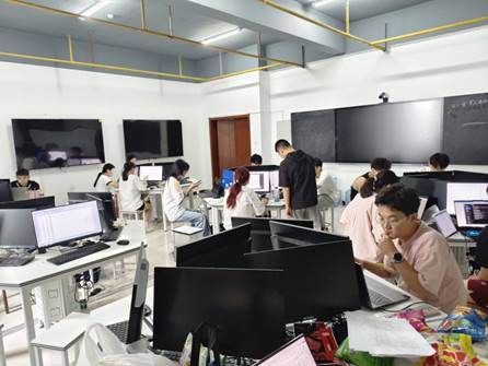 为备战本届竞赛,学校提前部署,william威廉中文3月启动备赛,组建以周志明为首的 7名骨干教师“导师团”,牵头组织了多轮系统培训,为参赛学生提供从理论强化到实战模拟的全过程支持。指导学生全真模拟。暑假期间,实验室灯火通明,同学们平均每日鏖战10小时,累计调试代码 3000余次、撰写论文 20 余稿。备赛期间展现出高度的专注与协作精神,充分利用课余时间深入研讨、反复调试,最终在比赛中交出了一份令人满意的答卷。